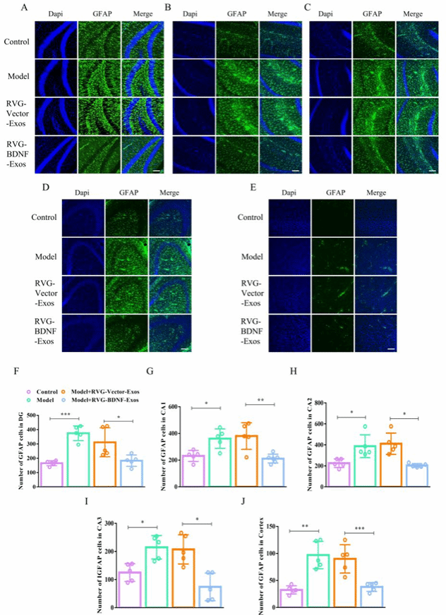圖5 RVG-BDNF-Exos可減少抑郁樣行為小鼠的星形膠質細胞數量