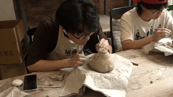 老師帶領同學們在下鄉實踐中體驗泥塑和拉坯傳統手工技藝