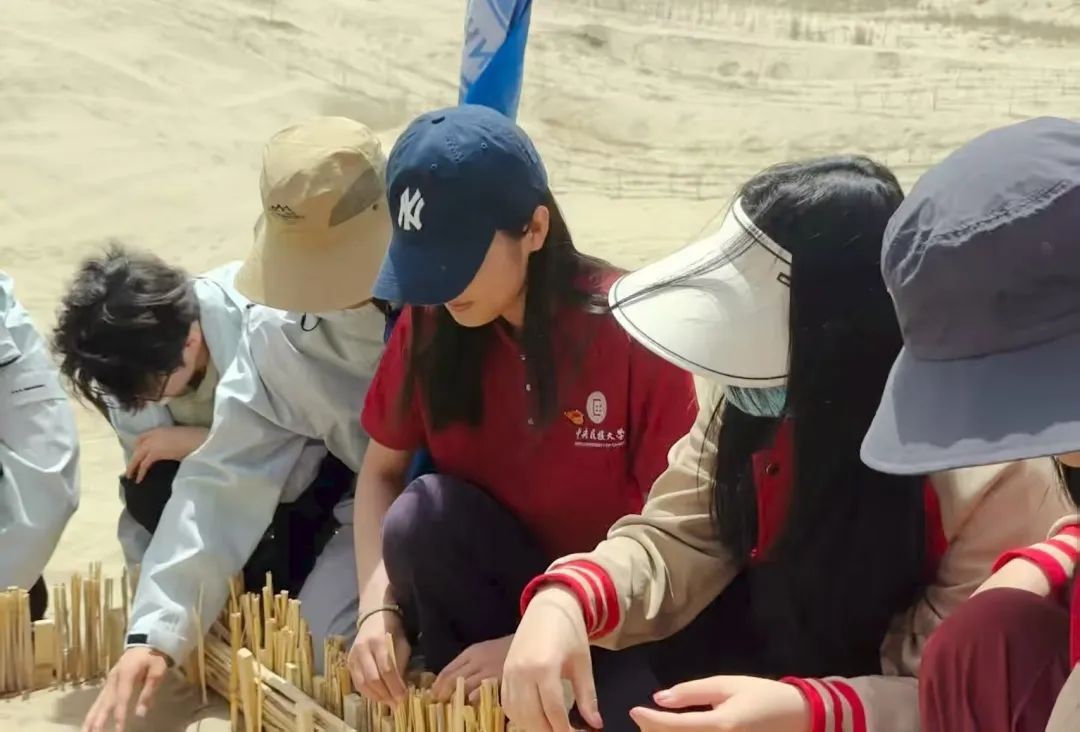 吳怡萱在塔克拉瑪干沙漠扎草方格