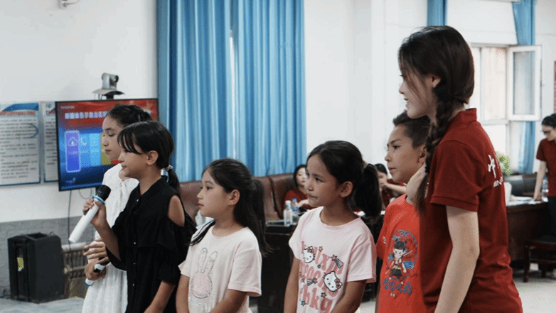 實踐團為孩子們策劃的“村晚”,不僅是才藝展示的舞臺,更是一場推普成果的生動匯報。通過直播,孩子們的表演跨越地域限制,收獲無數暖心點贊與好評。網友評論:“看到他們自信的笑容,仿佛聽到了普通話在邊疆開花的聲音。”這場村晚不僅讓當地群眾感受到語言的力量,也讓更多人看到邊疆教育的無限可能。
