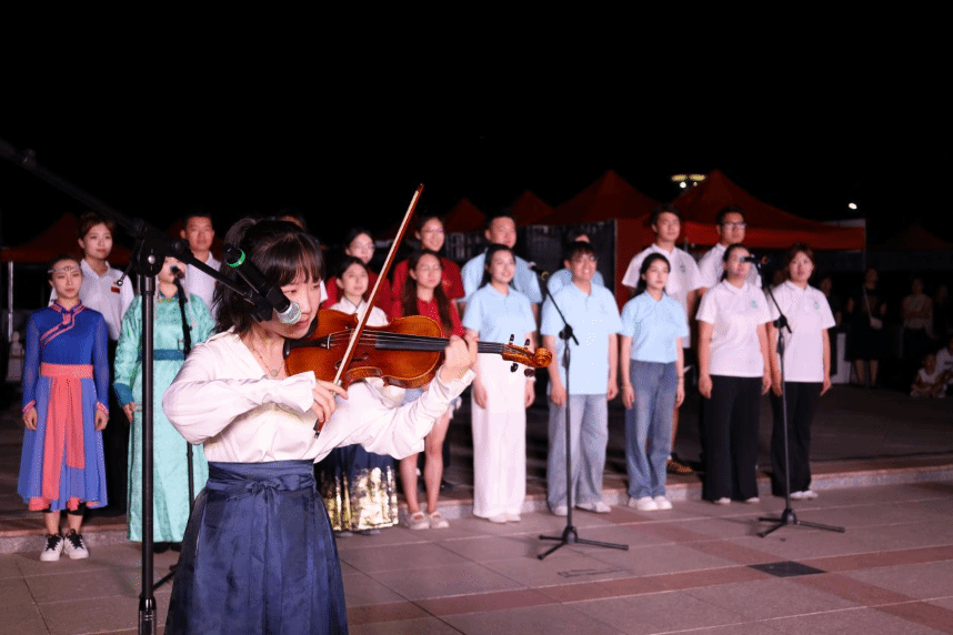 演出尾聲,團隊成員與其他高校學子并肩而立,和現場觀眾深情合唱《我和我的祖國》,共同用歌聲詮釋著對偉大祖國的熱愛與敬意,編織起一幅“和合共美”的幸福畫卷。學子們在百姓喜聞樂見的惠民舞臺上傳承中華文化薪火,更在服務基層的交流共融中堅定青春擔當信念。
