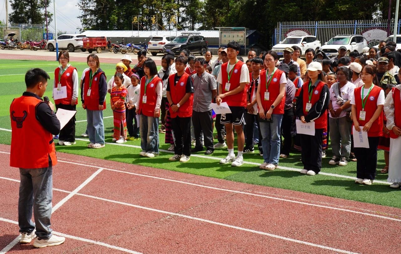 7月22日上午,中央民族大學實踐團成員與文東籍返鄉大學生齊聚瀾滄拉祜族自治縣文東佤族鄉中心小學,舉行“文東相聚·青春同行”見面交流會,文東佤族鄉黨群服務中心、文東佤族鄉中心小學的主要領導出席會議并組織崗前培訓。7月22日下午,開班儀式在文東鄉黨群服務中心主任李婭春的主持下舉行,文東鄉黨委副書記樊雄宣布中央民族大學暑期“雨潤心田 筑夢云滇”邊疆行暨“佤山夏韻 · 童心同行 ”文東鄉暑期公益成長營正式開班。