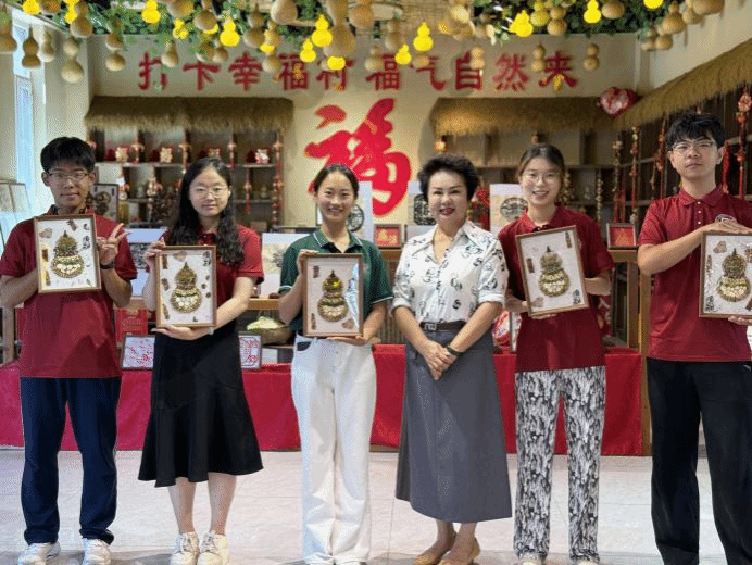服務隊成員在新疆呼圖壁縣葫蘆園體驗剪紙、麥稈畫等非遺技藝