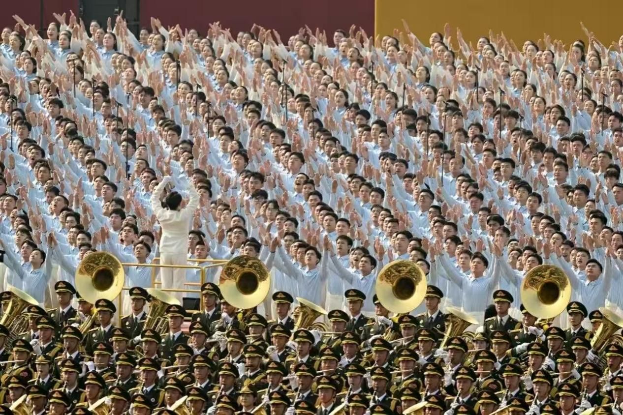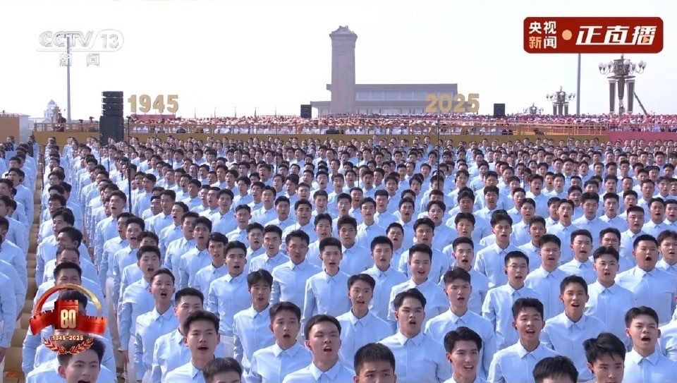 “我的家在東北松花江上......” 當第一句歌詞從3000人的胸腔中齊聲唱響,聲音在天安門廣場上空久久回蕩。“我聽見身邊有人開始哽咽,但所有人的歌聲,卻變得更加堅定、更加響亮。”