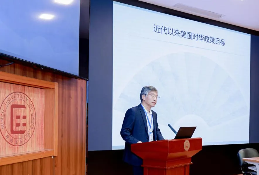 在主題報告環節,中央民族大學中國少數民族研究中心楊圣敏教授、北京大學歷史學系王立新教授和吉林大學國際關系研究所劉德斌教授,分別圍繞突厥學研究的戰略意義、美國對華政策目標、戰后國際體系的重構與中國周邊關系的再定位等方面議題作出闡釋,深化了與會者對中外關系史研究“為何研究”“研究何處”的認識與思考。