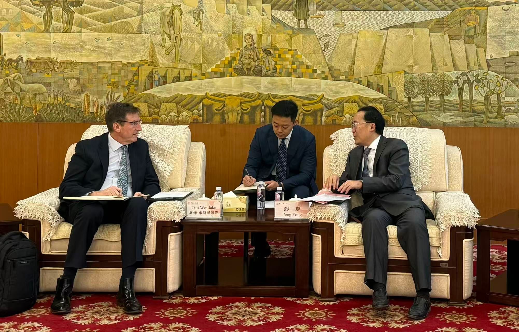 新聞網(wǎng)訊 11月3日,英國(guó)密德薩斯大學(xué)首席運(yùn)營(yíng)官蒂姆·韋斯特萊克教授(Tim Westlake)一行到訪中央民族大學(xué),校黨委常委、副校長(zhǎng)彭勇在海淀校區(qū)中慧樓會(huì)見來(lái)賓。